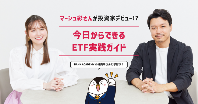 2024年より新しいNISA制度が始まり、資産形成に対する社会的な関心が高まっている中、マーシュ彩さんが当社の資産形成アンバサダーに就任、若年層を中心に資産形成の大切さを訴求する役割を務めていただいております。今回はその一環として、人気YouTubeチャンネル「BANK ACADEMY」を運営する小林亮平さんに投資のイロハを教えてもらいながら、投資未経験者のマーシュ彩さんが実際にETF(上場投資信託)投資に挑戦し、その投資結果も公開する連載企画をスタートします。