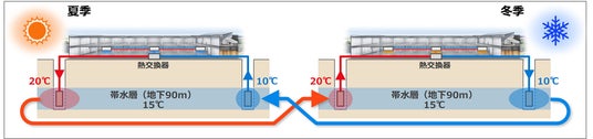 に対し、同システムは排熱を地下の帯水層に蓄え、蓄えた熱を季節ごとに交換し使用