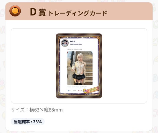 D賞:トレーディングカード - 当選確率 33%