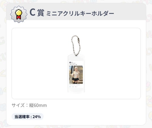 C賞:ミニアクリルキーホルダー - 当選確率 24%