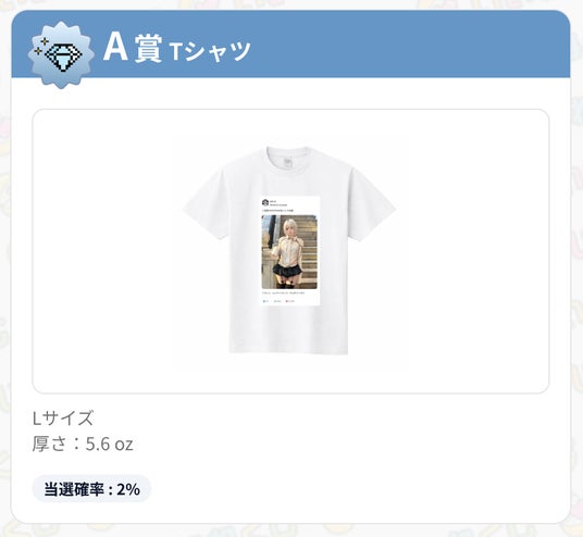 A賞:オリジナルTシャツ - 当選確率 2%