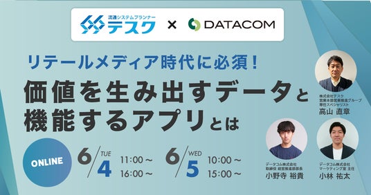 小売業界に特化した商品・顧客分析ソリューションを始めとする、パッケージシステムを開発・提供しているデータコム株式会社(本社:宮城県仙台市、代表取締役:小野寺修一)は、2024年6月4日(火)、6月5日(水)に株式会社テスクと共催で小売業におけるアプリとデータの活用に関するセミナーの再配信を行います。