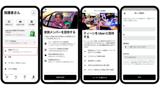 お子さまは、保護者の招待により家族用プロフィールを設定し、保護者があらかじめ設定した利用限度額の範囲内で注文でき、お支払いは保護者のアカウントに紐付きます。また、安全対策として、お子さまのアカウントでは、アルコールはじめ年齢制限が設けられている商品は検索候補およびメニューから除外されるため、安心してご利用いただけます。一方、保護者のアカウントでは、お子さまが注文すると通知が届き、注文内容の確認や配達状況をリアルタイムで追跡できます。さらに、Uber Teensの配達は、お客さまからの評価が高く、一定の配達実績があり、配達における安全基準を満たしている配達パートナーに限定されます。
