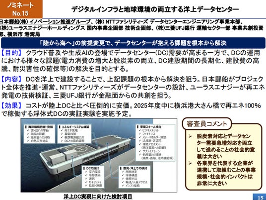 株式会社ユーラスエナジーホールディングス、日本郵船株式会社、株式会社NTTファシリティーズ、株式会社三菱UFJ銀行、横浜市が共同で検討しているデジタルインフラの成長と地球環境の保全を両立する洋上浮体型データセンターが2月9日、日本オープンイノベーション大賞総務大臣賞を受賞しました。