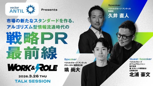 株式会社ベクトル(本社:東京都港区、代表取締役社長CEO:西江 肇司、東証プライム:6058、以下ベクトル)のグループ会社であり、AIを活用したSaaS事業を中心にTech領域を担う株式会社オフショアカンパニー(本社:東京都港区、代表取締役:野呂 健太、以下オフショアカンパニー)は、2026年3月26日(木)に開催されるイベント「WORK AND ROLE 2026」において、当社の執行役員・北浦豪文がベクトルグループ アンティル取締役の久井直人氏、同社グローカル・福岡責任者の塙尚大氏とともにトークセッションに登壇することをお知らせします。