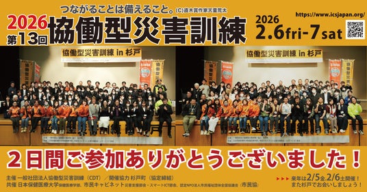 2014年国土交通省「広域的地域間共助推進事業」としてスタートし、「これまでの震災の経験と教訓を、来るべき大規模災害に活かすこと」をモットーに毎年開催を重ねている一般社団法人協働型災害訓練(本社:埼玉県東松山市、代表理事:とよしま亮介)は、2月6日(金)から7日(土)の日程で、第13回協働型災害訓練in杉戸「防災DX2.0~コンセプトフリーな世界を考える~」を開催しました。