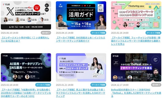 デジタルマーケティング事業を手がける株式会社フラッグ(本社:東京都渋谷区、代表取締役:久保浩章、以下、当社)は2025年7月15日(火)、7月16日(水)に、インフルエンサーを起用・活用している事業主・広告代理店様などを対象として、インフルエンサーマーケティングに関する無料ウェビナーを開催いたします。