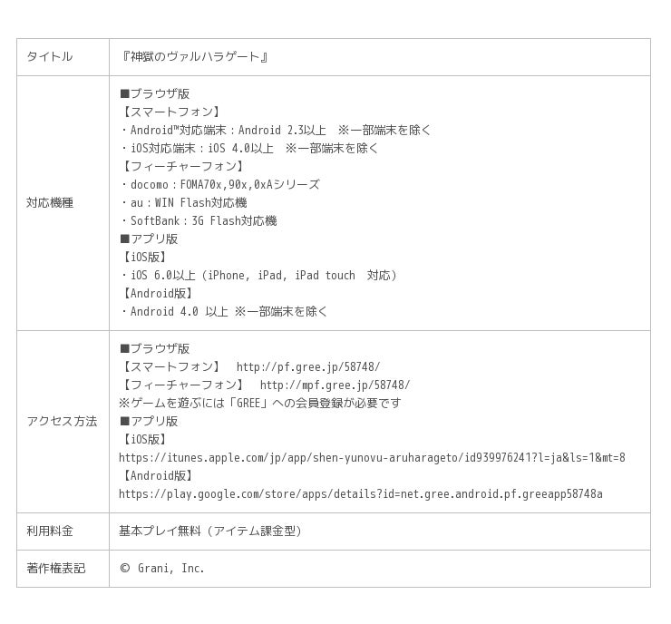 GraniとGraniロゴ、ヴァルハラゲートと『神獄のヴァルハラゲート』ロゴ、は、株式会社グラニの登録商標です。