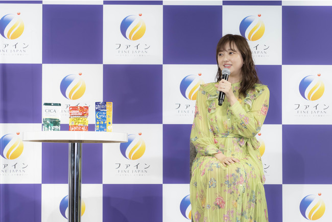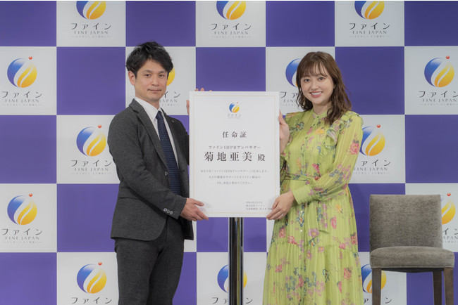 続いて、アイドルグループ「アイドリング!!!」の元メンバーで、現在は1歳半のお子様のママでもあるタレントの菊地亜美さんのファイン1日PRアンバサダー就任を記念して、表彰式を実施しました。
