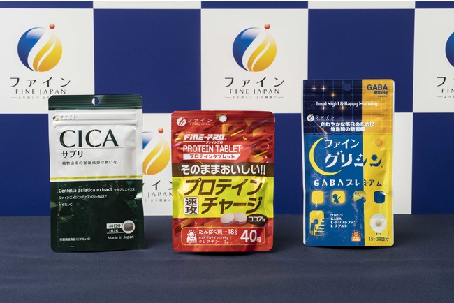今回の新商品発表会では、気軽にたんぱく質を摂取できるタブレット型サプリ「プロテインチャージ」、国内でも注目の美容成分“シカ”を配合したマスク生活によるゆらぎをサポートする「CICAサプリ」、余裕のない日々や考え込みすぎてしまう現代人の快適な毎日をサポートする「ファイングリシン(R)GABAプレミアム」の3つの新商品紹介を実施しました。