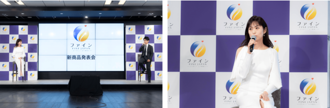 イベント内では美容家として活躍する岡本静香さんに登壇いただき、ファイン取締役兼製品開発の責任者であり、工学博士としての肩書を持つ佐々木義晴とともに「美容」の観点を交えた新商品に関するクロストークを実施しました。