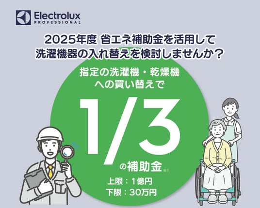 業務用ランドリー機器のグローバルブランド「エレクトロラックス・プロフェッショナル」(本社:東京都港区、代表取締役:高雄雅丸)は、2025年度の「省エネルギー投資促進支援補助金(設備単位型)」の公募開始にあたり、対象機器である当社製業務用洗濯機・乾燥機の導入支援を本格的に開始いたしました。