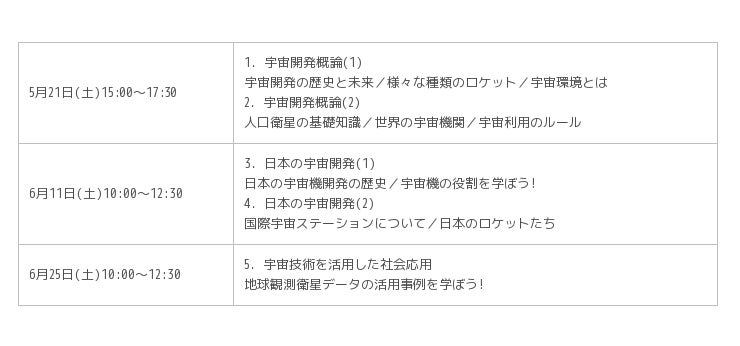 内容: 【パソナ宇宙講座基礎コース 全3日5講座】