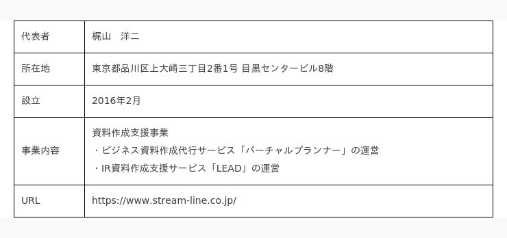 株式会社ストリームラインは、「コミュニケーションの合理化で、ビジネスを進化させる」という理念を掲げ、2016年よりビジネス資料作成代行サービス「バーチャルプランナー」を展開しております。創業から7年間で、900社以上、2,200部以上の資料作成を支援し、質の高い資料を作成することでコミュニケーションの合理化を実現し、成果を生みやすい環境を創出してまいりました。