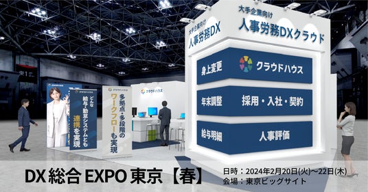 大手企業向け人事労務DXクラウド『クラウドハウス労務』を運営する株式会社Techouse(本社所在地:東京都港区、代表取締役社長:礒邉 基之)は、2024年2月20日(火)から2月22日(木)までの3日間、人事・労務・採用業務のDX化を促進する展示会「DX総合EXPO 2024 春 東京」に出展いたします。