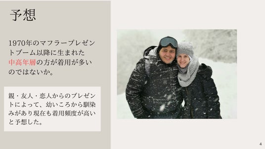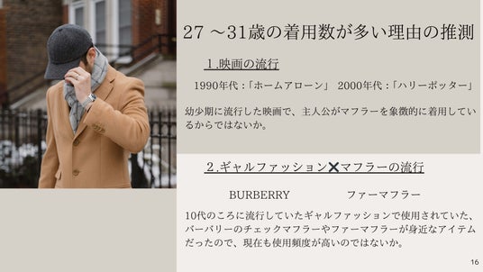 2025年第3弾のテーマは「年代ごとのマフラー着用率」。