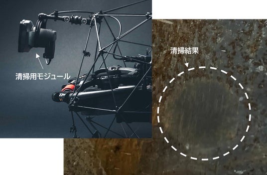 点検対象物表面の付着物などにより測定が困難な場合、プローブヘッドを清掃用モジュールに交換し、対象を清掃することができます。