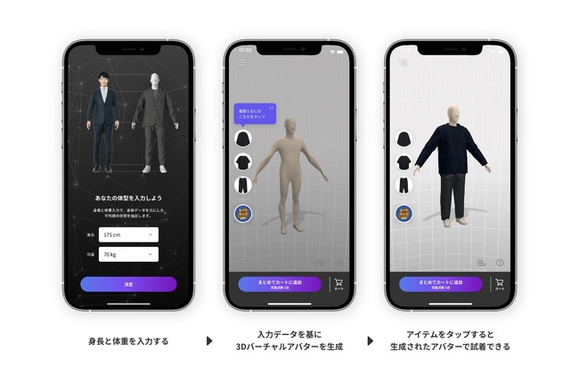 ※2…3Dバーチャルアバターの体型生成にはZOZOSUITにより集積した体型計測データを活用しています。