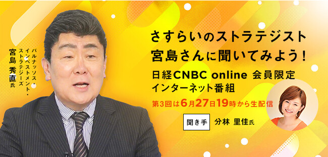 株式会社日経CNBC(本社:東京都千代田区、代表取締役社長:竹之内源市、以下「日経CNBC」)はインターネット限定番組「さすらいのストラテジスト 宮島さんに聞いてみよう!」第3回を配信します。日経CNBC onlineの会員向けで、6月27日(火)19時から配信予定です。