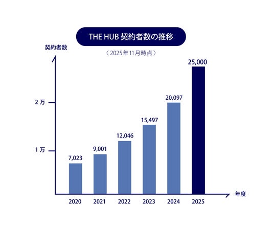 「いい仕事は、いいオフィスから」をコンセプトにシェアオフィス(レンタルオフィス・コワーキングスペース)の「THE HUB」を運営するnex株式会社(東京都港区所在、代表取締役:若林 武、以下「nex」といいます。)は、2025年10月をもって契約者数25,000社(10月31日時点/契約者数25,398)を達成いたしました。