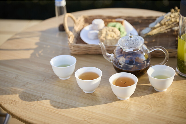 ※各茶農家が育てたお茶とお茶菓子を含む「茶の輪ピクニックセット」付き