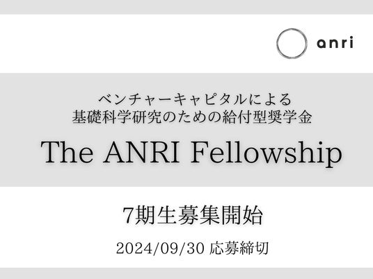 独立系ベンチャーキャピタルANRI(本社:東京港区、代表パートナー:佐俣アンリ、以下「当社」)は、日本の基礎科学研究への支援として、数学や物理学、生物学、化学など実用化までには時間がかかるが人類の発展に重要である基礎研究の分野に取り組む学生を対象とした給付型奨学金プログラム「The ANRI Fellowship」を2019年より実施しています。