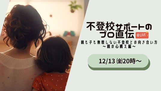 2024年12月13日(金)20:00~20:45、ウェブメディア「不登校オンライン」(運営:株式会社キズキ)が、オンライン講演会を開催します。