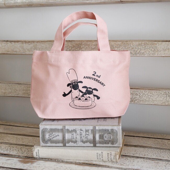 2周年をケーキでお祝いする限定アートのショーンとティミーがプリントされたミニトートです。