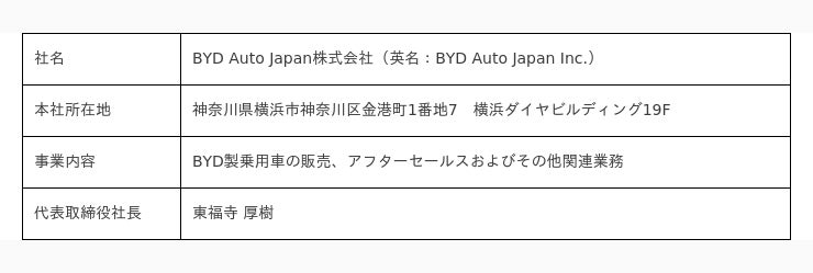 BYDの日本法人 ビーワイディージャパン株式会社の100%出資子会社として設立したBYD Auto Japanは、日本におけるBYDの乗用車販売サービス専業会社です。