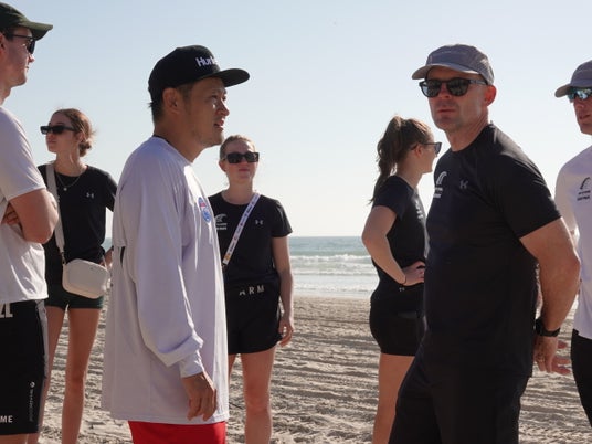 2022年の前回大会では開催されなかったIRB競技。IRB日本代表選手は、男子の岸 瑛心選手が2022ユース日本代表として参加した以外、世界選手権大会初参加の顔ぶれ。選手団を率いた鈴木慎一コーチは、チームマネージャーとして最後に参加した2018年のIRB競技参加の経験があるものの、先頭に立って率いるのは初めて。現地入りしてからも、海の状況をみながらチームビルディングに臨んだ。