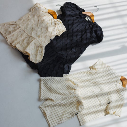 今回の夏コレクションでは、今年の春企画で大人気だった大きめのリボンが目を惹く長袖Tシャツの半袖バージョンが登場。他にはセットアップでも着られるシャツやハーフパンツ、ワンピースなどもラインナップ。「いつも側にありますように…(ハート)」という金子綾の想いが詰まった大人気の「b.+A」、2025年夏コレクションもどうぞご覧ください。