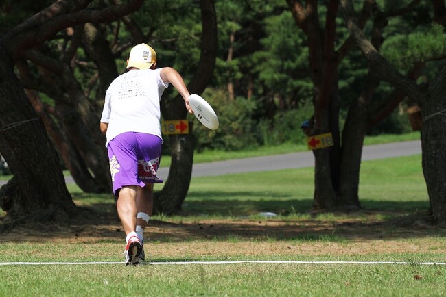 ディスクの飛距離を競う種目です。間隔をおいて設けた複数のスローイングサイトから2分30秒以内に5回スローを行い、飛距離を計測します(ファウルラインの中心から、地面に落ちた地点でのディスクの中心までを計測)。スローイングの際は、投げ方に制限はありませんが、バックハンドスローが一般的です。