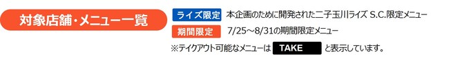 夏グルメフェアの開催期間中、対象のレストラン&カフェで17時以降2,000円以上(税込・合算不可)ご利用いただいた方に、500円分の二子玉川ライズ・ショッピングセンターお食事券を先着3,000枚限定でプレゼントします。