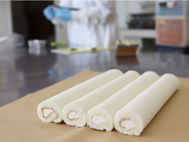 雪のように白一色にするためピュアホワイト卵を使ったチーズ好きにはたまらないミニロールケーキ