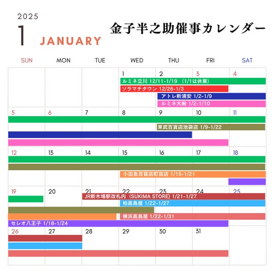 ※年末年始の営業日程・時間は催事場によって異なります。各施設のホームページ等をご確認ください。