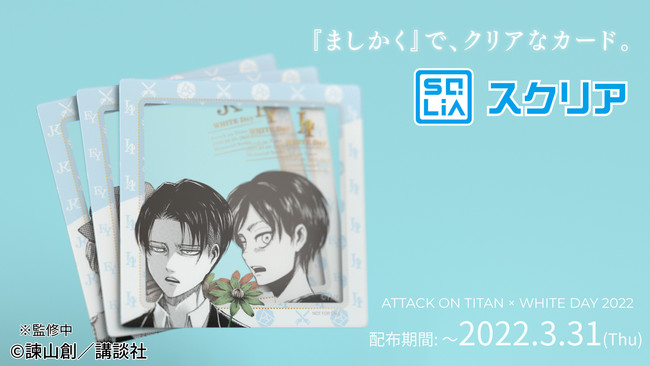 「『進撃の巨人』Valentine's Day 2022」グッズの注文金額の合計が2,000円(税込)ごとに『進撃の巨人』ホワイトデー "スクリア" カード〈全6種〉をランダム1枚、12,000円(税込)ごとに、全種セットをプレゼントいたします!