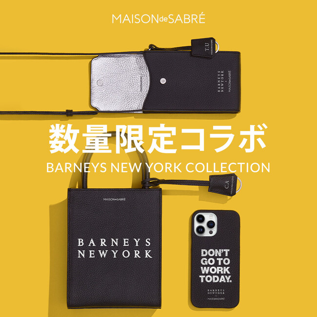 - Barneys New Yorkスローガン「DON’T GO TO WORK TODAY.」が刻印されたシックで洗練されたレザーアイテム。MAISON de SABREの3つの人気商品に展開。-