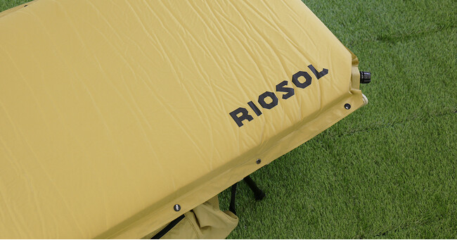 当製品は別売りの「RIOSOL インフレータブルマット」と連結可能です。カラーもタン、ブラック、オリーブと、インフレータブルマットと同じカラー展開※なので、取り付け後もキャンプサイトの統一感を損ないません。連結することでさらに寝心地が上がり、家のベッドで寝ているかのような心地よさを体験できます。「RIOSOL インフレータブルマット」にはコットへの固定用バンドが付いているので、寝ている間にずれてしまう心配もありません。