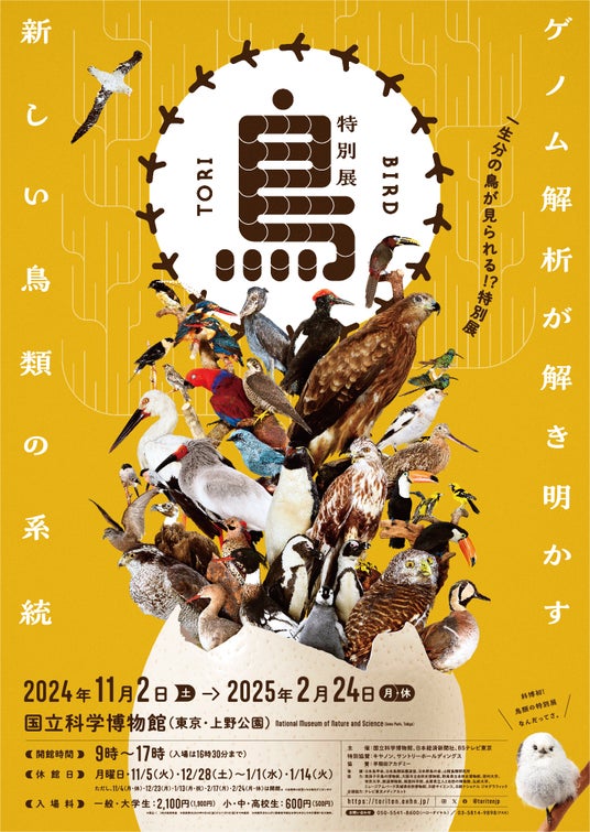 小学生・中学生・高校生を対象とした進学塾を運営する株式会社早稲田アカデミー(本社:東京都豊島区、代表取締役社長 山本 豊)は、2024年11月2日(土)~2025年2月24日(月・休)にかけて開催される国立科学博物館での特別展「鳥 ~ゲノム解析が解き明かす新しい鳥類の系統~ 」(以下、本展)に協賛企業として参加することをお知らせ致します。