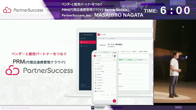ベンダーと販売パートナーをつなぐPRM-代理店連携管理クラウド「PartnerSuccess」を開発運営するパートナーサクセス株式会社(本社:東京都渋谷区、代表取締役 永田雅裕、以下「パートナーサクセス」)は、2022年7月8日(金)に開催されました「IVS2022 NAHA」内で、次世代の起業家の登竜門ともいわれるピッチイベント「IVS2022 LAUNCHPAD NAHA」にて過去最多250社の応募の中、ファイナリスト14社の登壇者として出場しましたことをお知らせいたします。