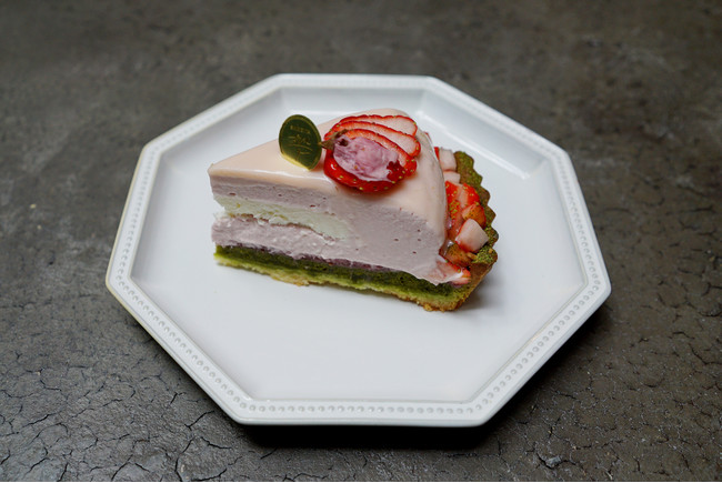 軽やかな苺のムースに桜の香りを移し、クリームチーズのコクと抹茶のほろ苦さを合わせた春の芽吹きを感じられるタルト。この時期だけの桜の香りを楽しみながら、可憐なタルトと共にひな祭りをお楽しみください。