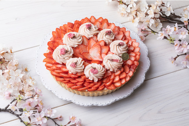 ザ・パティスリー一番人気の定番の苺のタルトに、桜の香りをプラスした贅沢な味わい。飾りに桜餡のクリームを塩漬けの桜の花びらと共にあしらいました。群馬県産の苺がたっぷりの華やかな春色タルトをお召し上がりください。