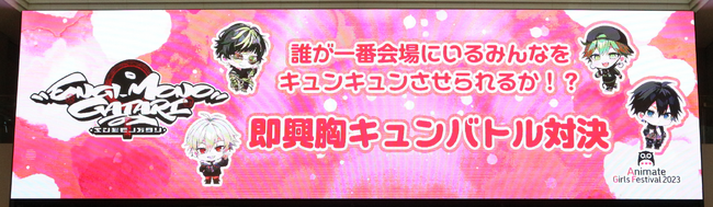 普段の動画と同様に、毘沙門の軽快な司会の元、今回のステージのために用意されたバラエティ企画「即興胸キュンバトル対決」が発表される。