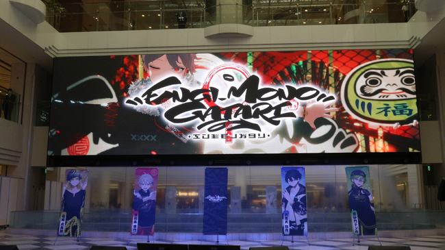 定刻になると、「この世の悪霊を縁起で祓い、演技で人々の心を晴らす」という、ENGI-MONO達の背負った使命のイントロダクションと、「毘沙門テンカ」「大黒天詩月」「恵比寿亜門」「福禄虎寿郎」の紹介が行われた。