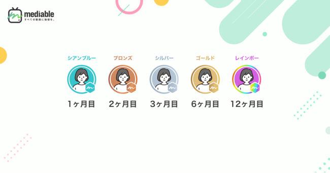 応援サブスクのサポーターバッジは、シアンブルー ・ブロンズ ・シルバー・ゴールド・レインボー の5種類あります。それぞれのバッジは好きなクリエイターのプランに加入しサポーターになってからの期間を表します。