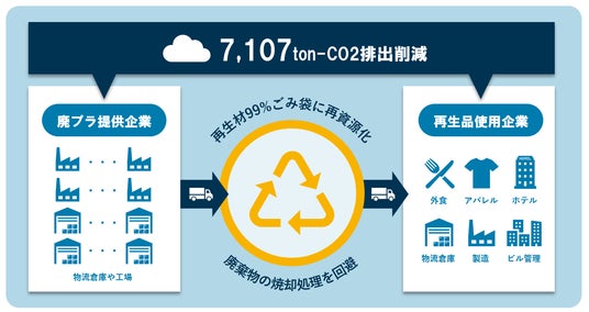 *廃プラスチックを新たな製品に生まれ変わらせ、焼却処理と資源消費を抑制することで、年間5,000トンのCO2排出削減を目指すプロジェクト