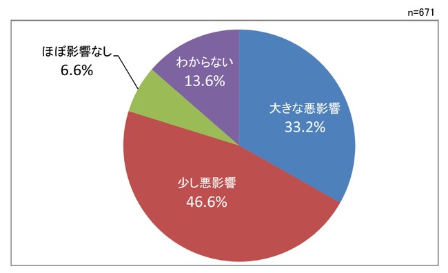今後、新型コロナウイルス感染症が経済に及ぼす影響について、「大きな悪影響がでる」が33.2%、「少し悪影響がでる」が46.6%と8割が危機感を持っています。感染者数は減少傾向ですが、オミクロン株による影響は見通せず、慎重な見方が強まっています。