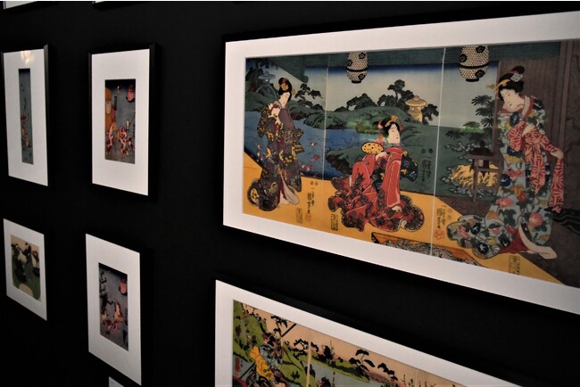 江戸時代末期の浮世絵師である歌川国芳の作品から、金魚と鯉が描かれているものを二十点余り収集し展示しています。日本美術を代表する国芳は「奇想の絵師」などとも呼ばれ、ユーモラスで大胆奇抜な作風が人気を博しました。金魚を擬人化した作品などからは、江戸時代に庶民にも親しまれるようになったという金魚鑑賞の歴史を感じるとることができます。