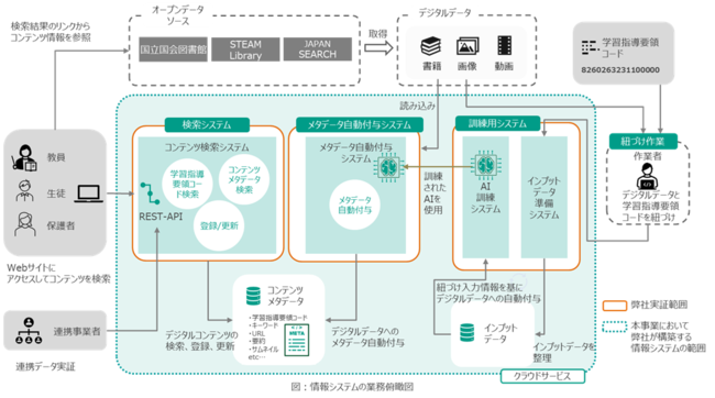富士ソフト株式会社は、デジタル庁の「教育における広域なデジタルコンテンツの利活用環境の整備に向けた調査研究」事業に採択されました。AIを活用し、教育デジタルコンテンツとして利用可能な電子書籍や動画、画像等のデジタルコンテンツを学習指導要領コードと紐づけ、学校等で利用するための環境を整備いたします。