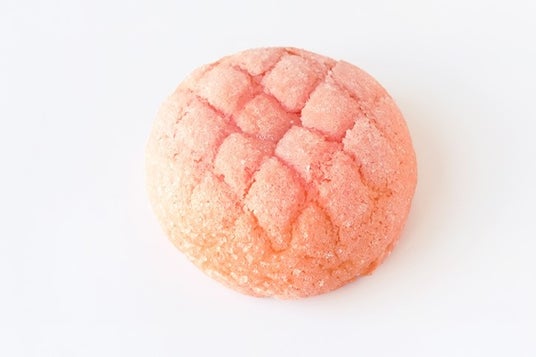 菓子パン生地で桃ジャムを包み、桃色のビス生地でメロンパンならぬ桃パンに仕上げました。
